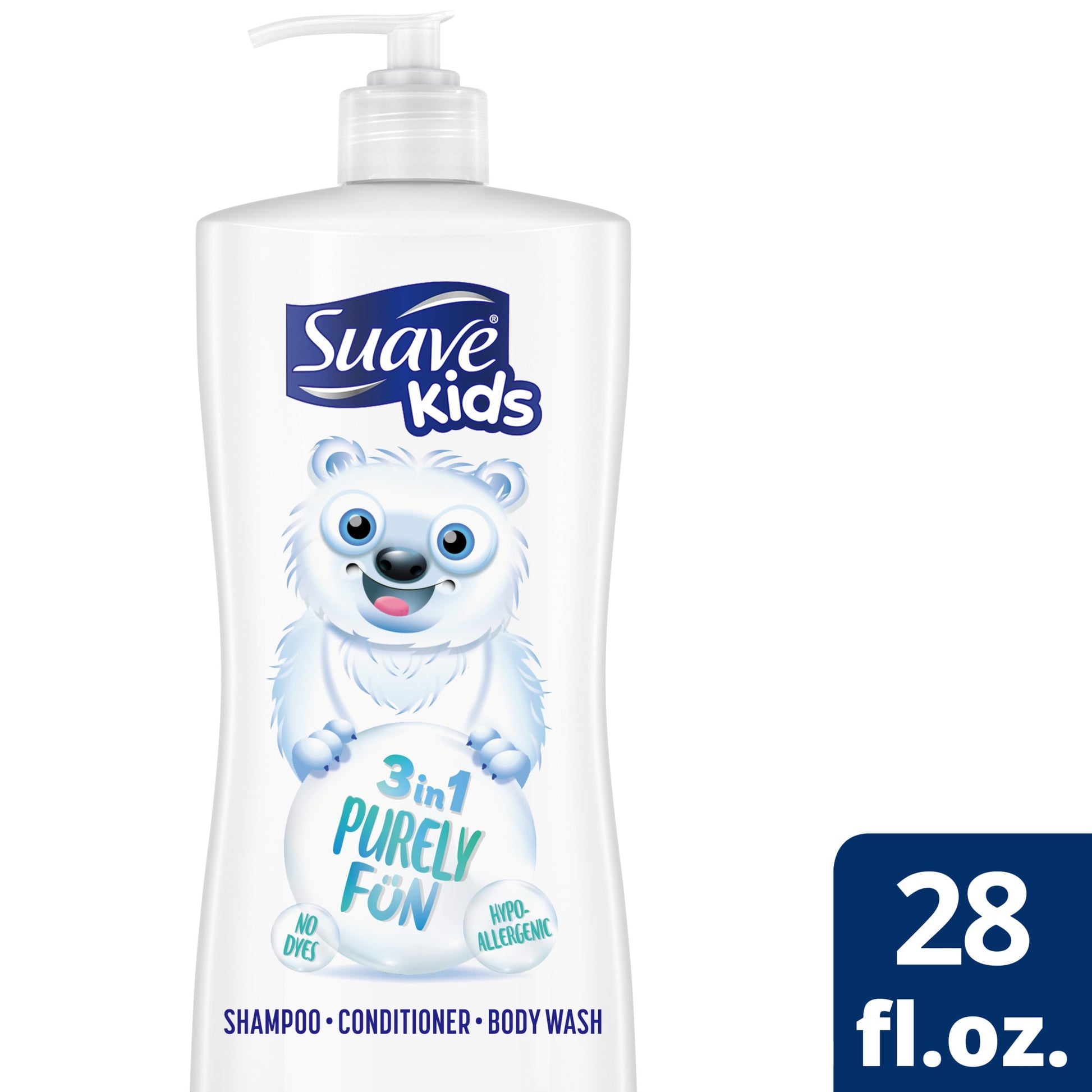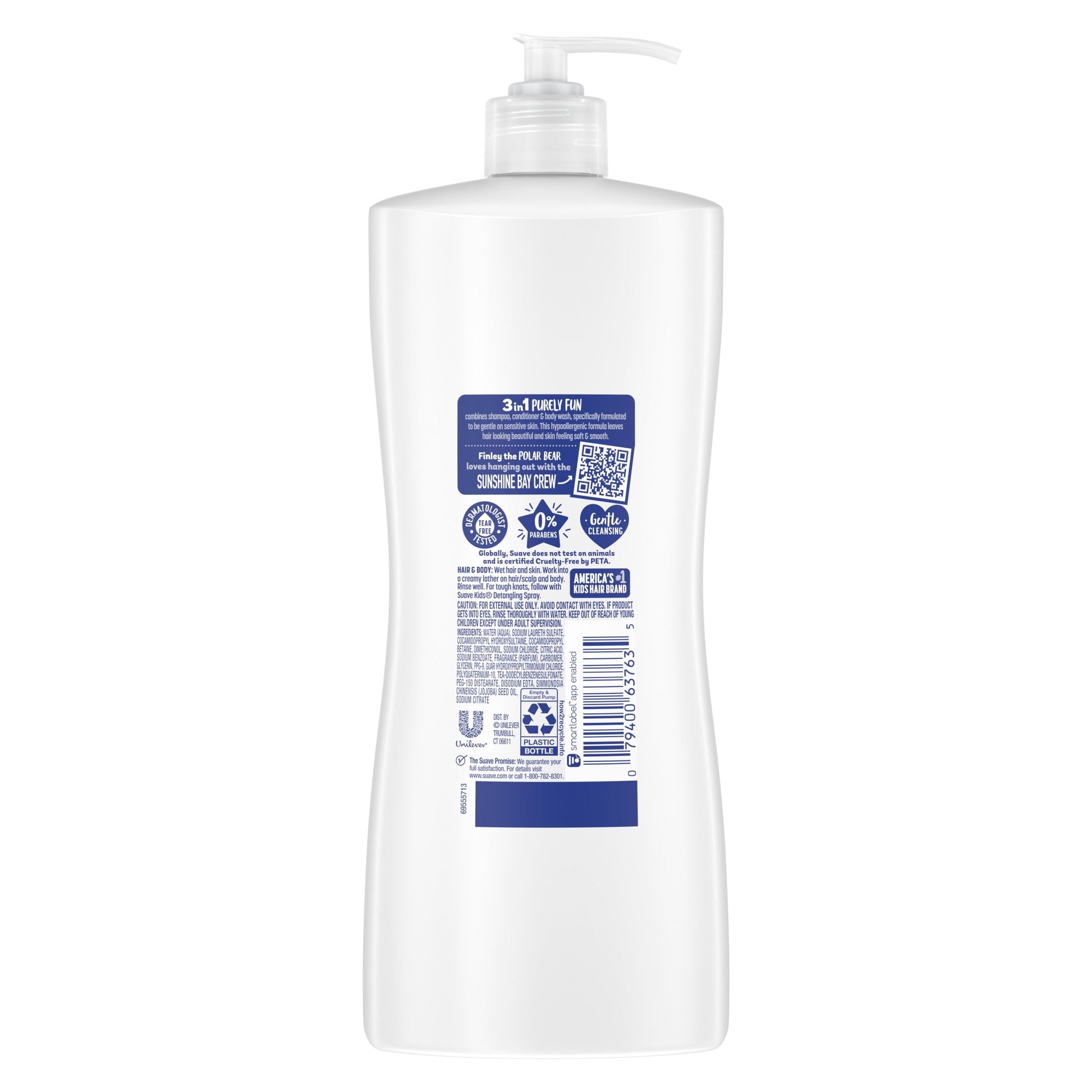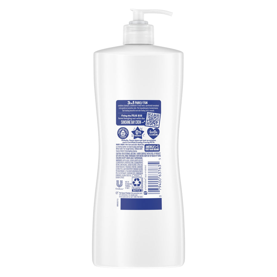Make bathtime a blast with the Sunshine Bay Crew! Purely Fun Bathtime with Finley the Polar Boar! Finley loves a Purely Fun during bathtime with this 3 in 1 shampoo, conditioner, and body wash. Suave Kids Purely Fun 3-in-1 Shampoo Conditioner Body Wash uses a mild, tear-free formula made just for kids. Our gentle shampoo, conditioner, and body wash contains no parabens, no dyes, and is also aluminum-free. Suave Kids 3-in-1 shampoo, conditioner, and body wash is infused with moisturizing jojoba oil and features a mild, clean scent that will leave your little ones smelling fresh. This gentle kid's shampoo, conditioner, and body wash makes bath time quick and easy. Suave Kids Purely Fun 3-in-1 Kids Shampoo, Conditioner, and Body Wash is hypoallergenic and dermatologist-tested to be safe for kids.