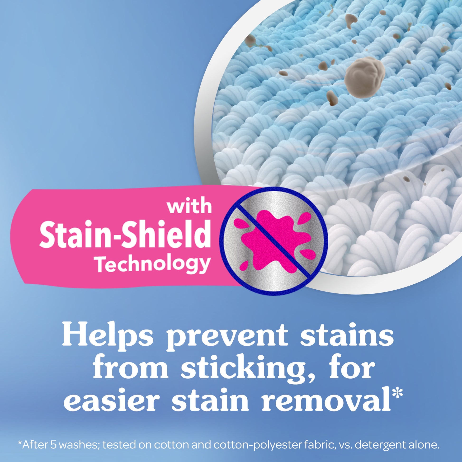 (2) After 5 washes; tested on cotton and cotton-polyester fabric; vs. detergent alone