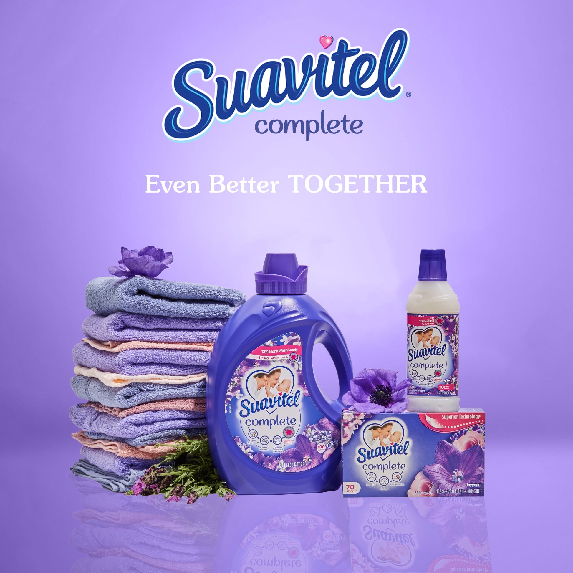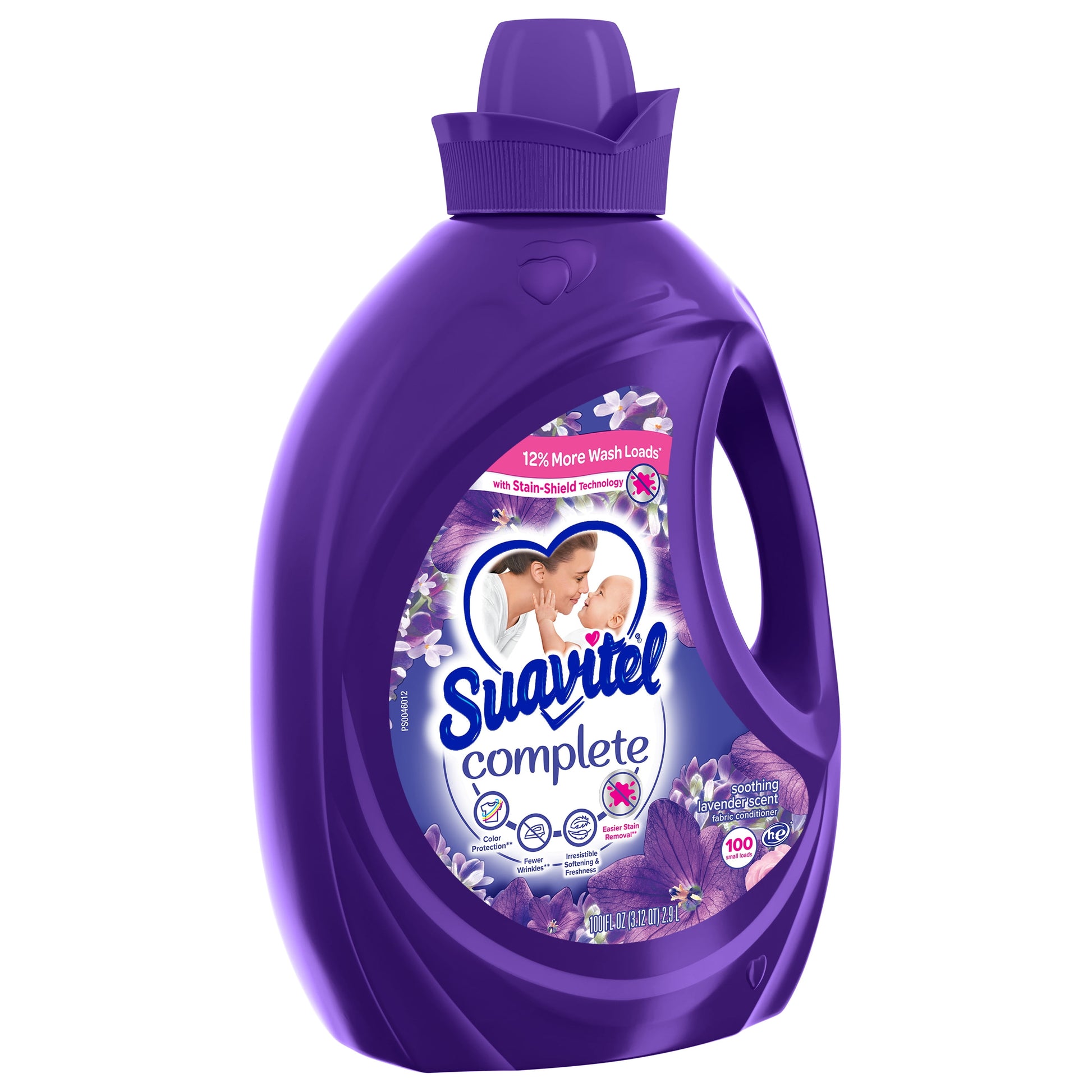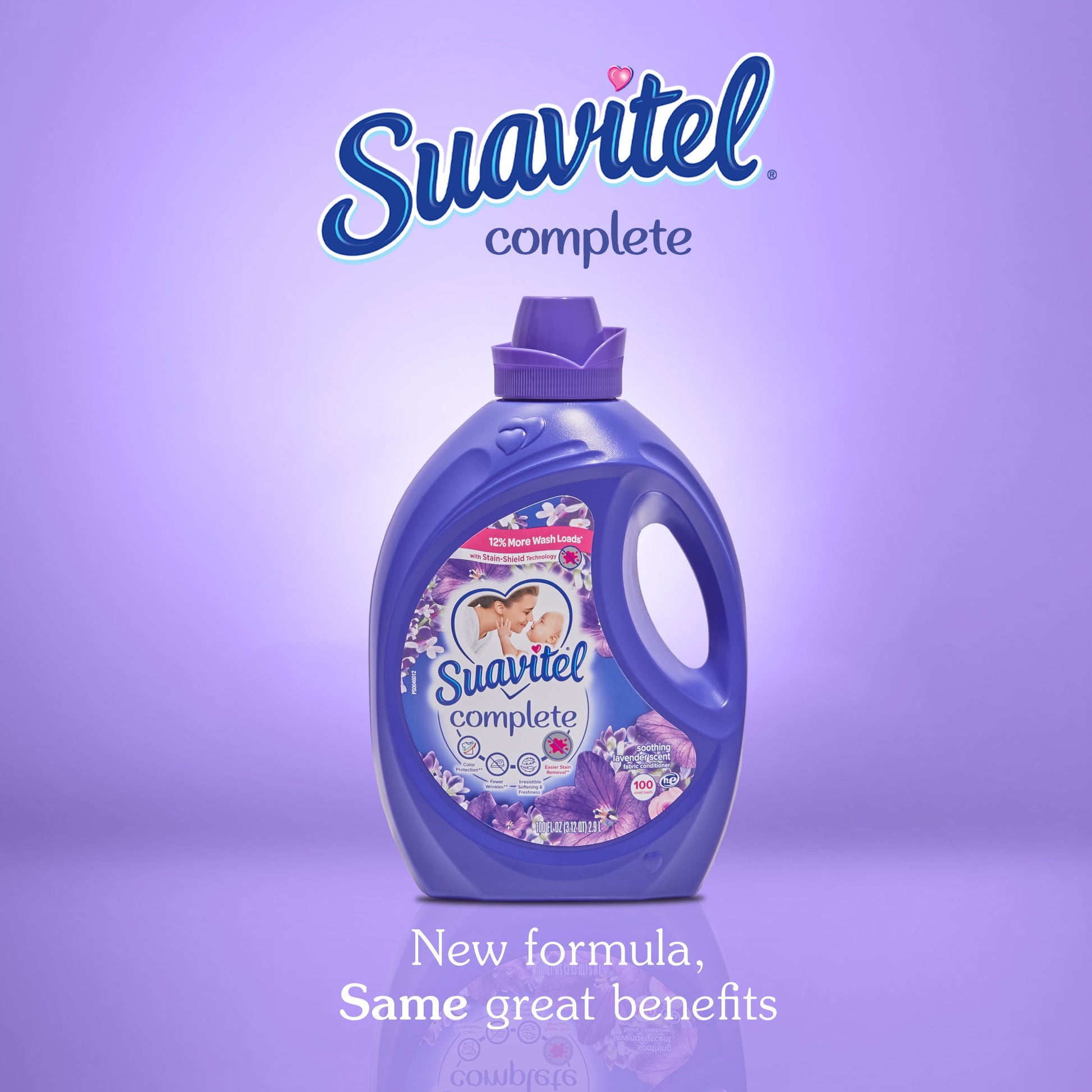 Suavitel Complete is the ideal solution to caring for your clothes and your family's laundry with ease. Liquid fabric softener provides fabric protection benefits that help keep clothes looking newer longer (2). Suavitel Complete now offers a new formula providing you with the softening and freshness that you and your family love. Say goodbye to bad odors with Suavitel Complete Soothing Lavender. Our technology fights odors and helps with all day odor protection (1). Enjoy the confidence of fresh and pleasant-smelling clothes, and fewer wrinkles (2). Suavitel Complete with Stain-Shield technology ensures color protection, making your clothes look newer for longer (2). Suavitel Complete provides softness to fabric fibers, aligning them and preventing extensive wrinkle formation. Indulge in the irresistible softness and freshness that Suavitel Complete provides. Suavitel Complete Soothing Lavender helps prevent stains from sticking (2), tackling even the toughest stains with its Stain-Shield Technology; thereby helping your clothes look their best. Suavitel is compatible with all types of washing machines, including HE Washing Machines (3). You can trust Suavitel to deliver exceptional results without damaging your laundry appliances. Upgrade your laundry routine with Suavitel Complete Soothing Lavender. Enjoy the long-lasting freshness and all-day odor protection with a formula that helps your clothes look newer, longer (2). Suavitel Complete Soothing Lavender is here to provide the ultimate care and freshness you deserve.