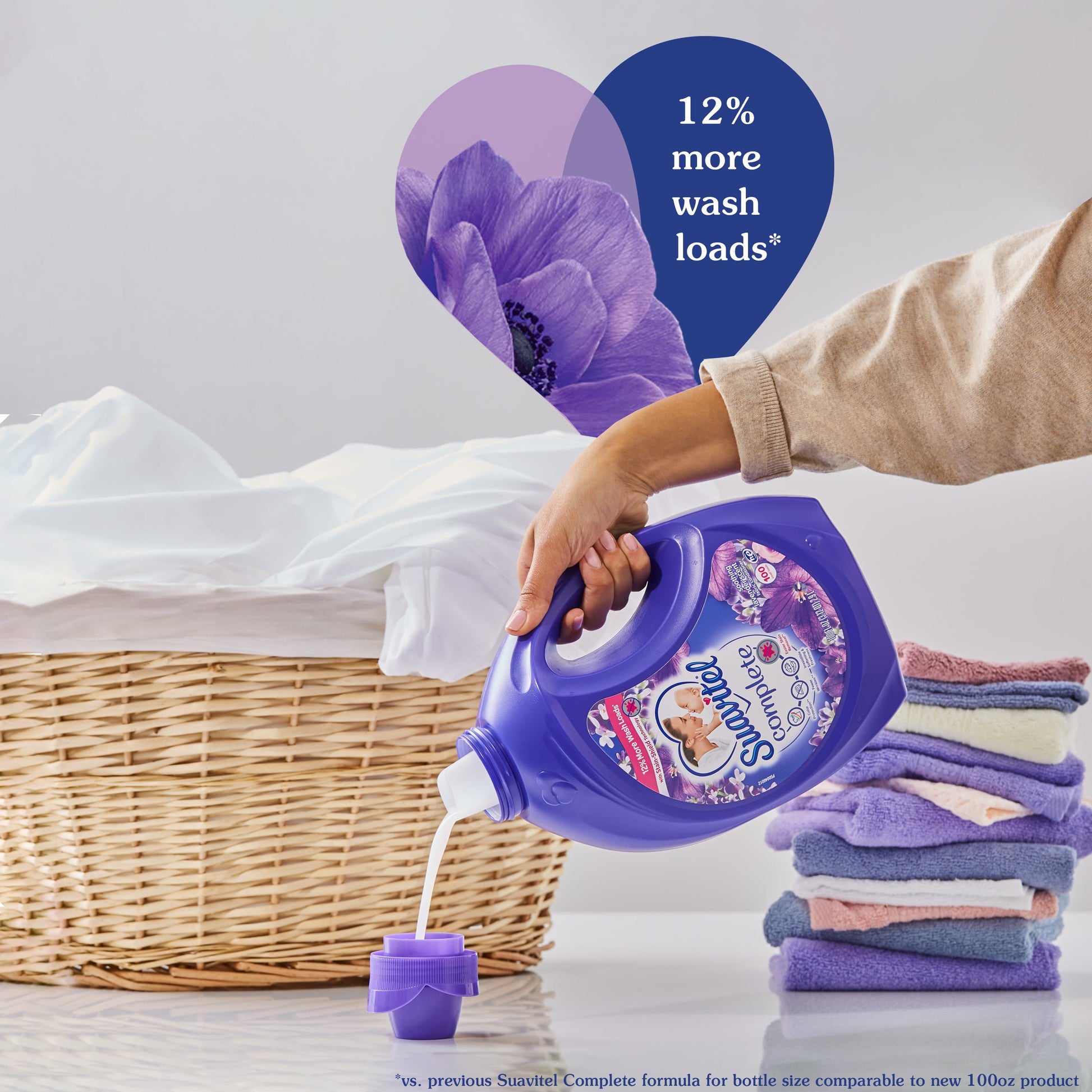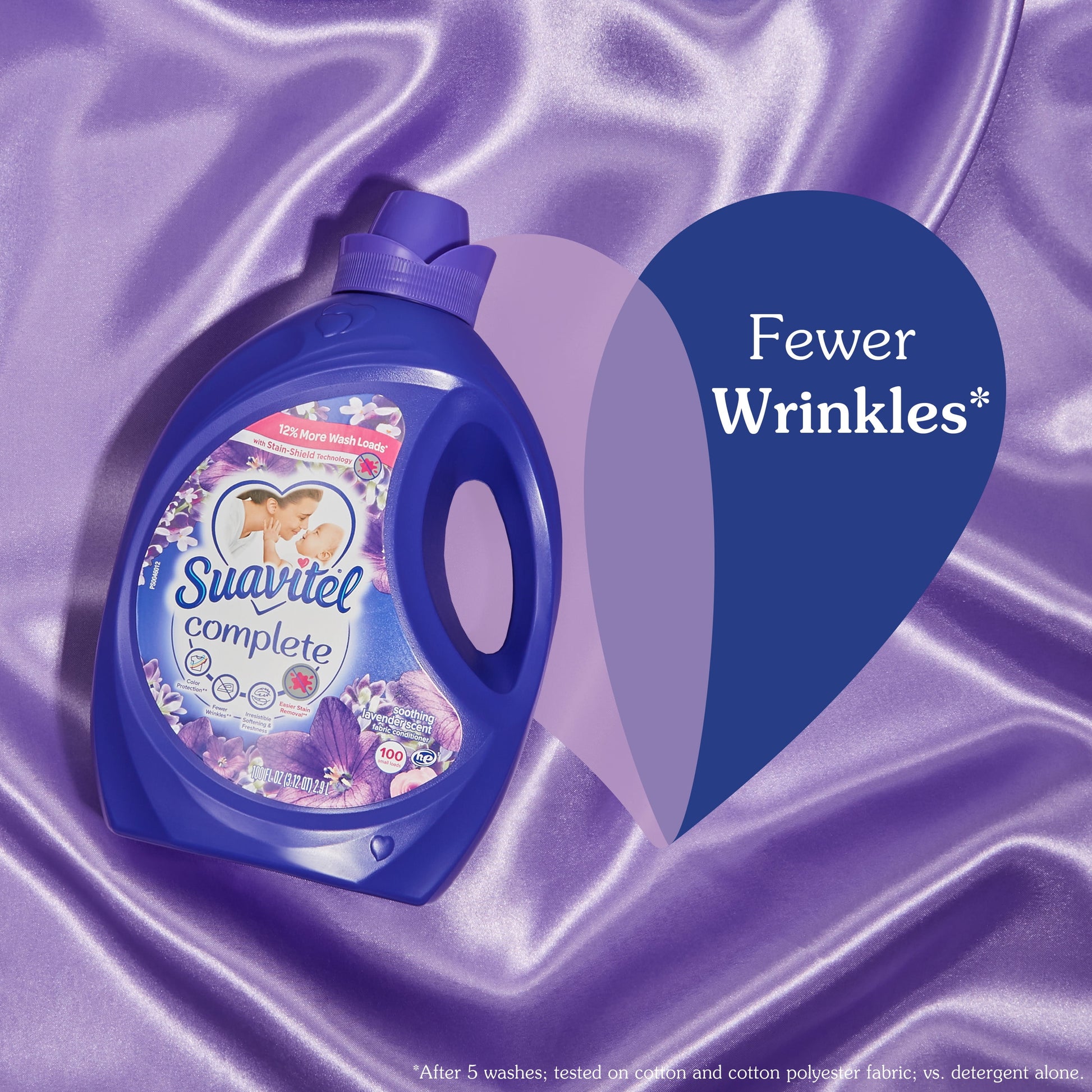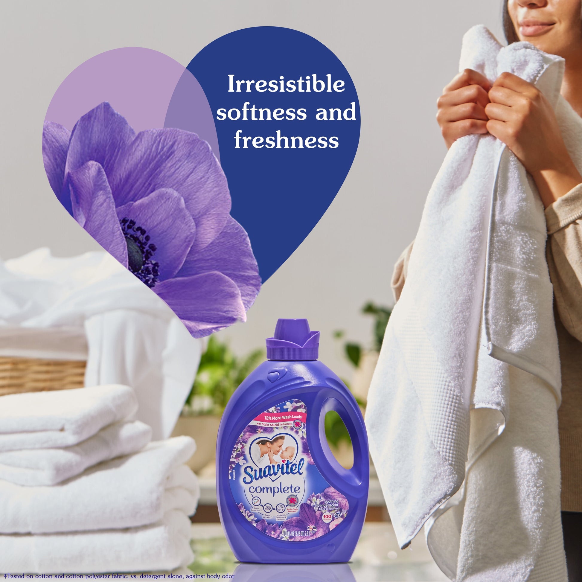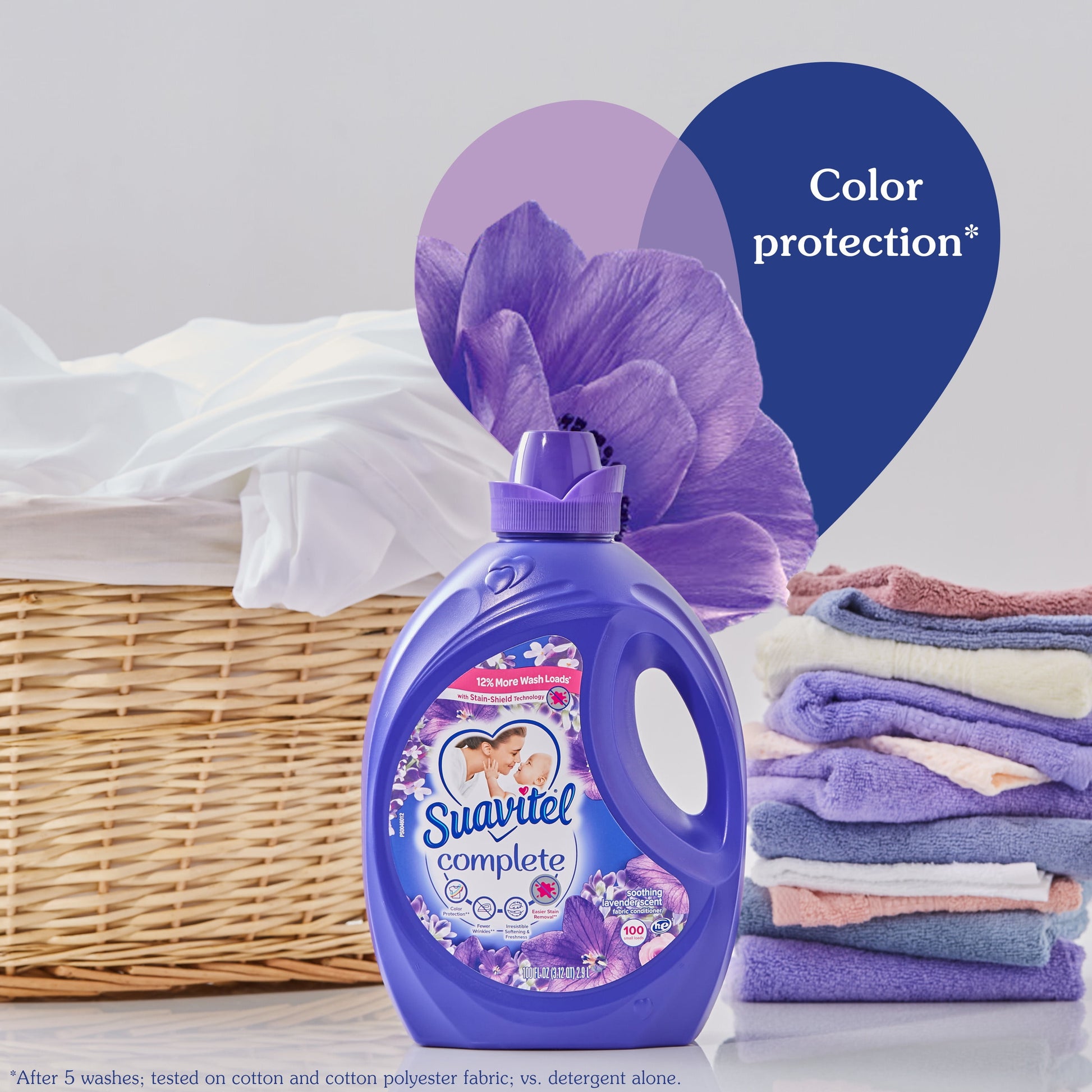 Suavitel Complete is the ideal solution to caring for your clothes and your family's laundry with ease. Liquid fabric softener provides fabric protection benefits that help keep clothes looking newer longer (2). Suavitel Complete now offers a new formula providing you with the softening and freshness that you and your family love. Say goodbye to bad odors with Suavitel Complete Soothing Lavender. Our technology fights odors and helps with all day odor protection (1). Enjoy the confidence of fresh and pleasant-smelling clothes, and fewer wrinkles (2). Suavitel Complete with Stain-Shield technology ensures color protection, making your clothes look newer for longer (2). Suavitel Complete provides softness to fabric fibers, aligning them and preventing extensive wrinkle formation. Indulge in the irresistible softness and freshness that Suavitel Complete provides. Suavitel Complete Soothing Lavender helps prevent stains from sticking (2), tackling even the toughest stains with its Stain-Shield Technology; thereby helping your clothes look their best. Suavitel is compatible with all types of washing machines, including HE Washing Machines (3). You can trust Suavitel to deliver exceptional results without damaging your laundry appliances. Upgrade your laundry routine with Suavitel Complete Soothing Lavender. Enjoy the long-lasting freshness and all-day odor protection with a formula that helps your clothes look newer, longer (2). Suavitel Complete Soothing Lavender is here to provide the ultimate care and freshness you deserve.