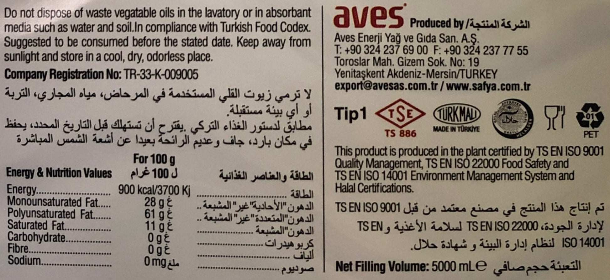 Safya sunflower oil is produced in fully integrated vegetable oil factory, which boosts the largest crushing capacity of Turkey, owned by Aves Oil. Right from the field up until the table, whole production process is automated with cutting edge hygiene standards. Owing to its quality and unique bottle design, Safya sunflower oil penetrated the market with extraordinary success.