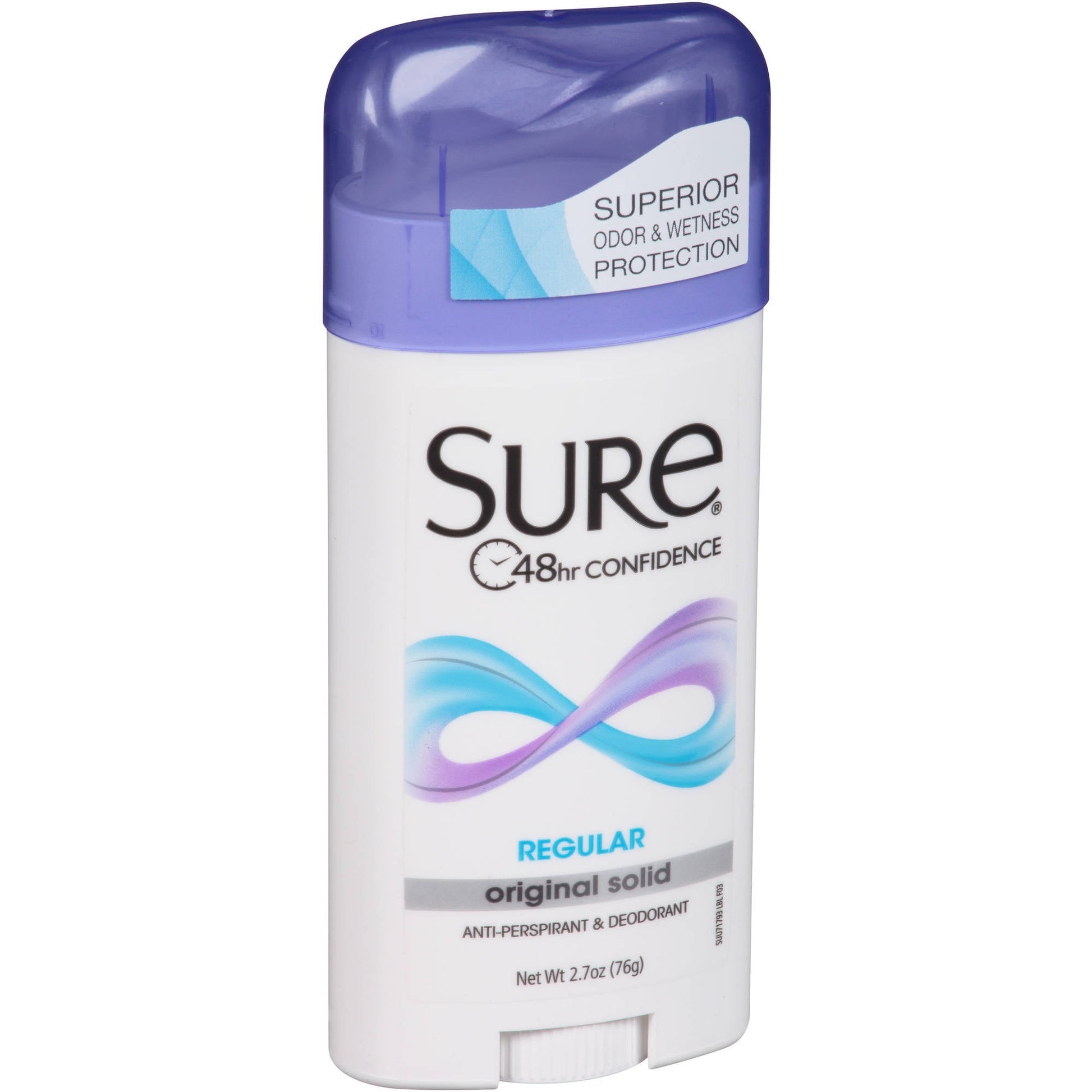 Sure Original Solid Anti-Perspirant & Deodorant, Regular Scent, Women's, 2.7 oz
