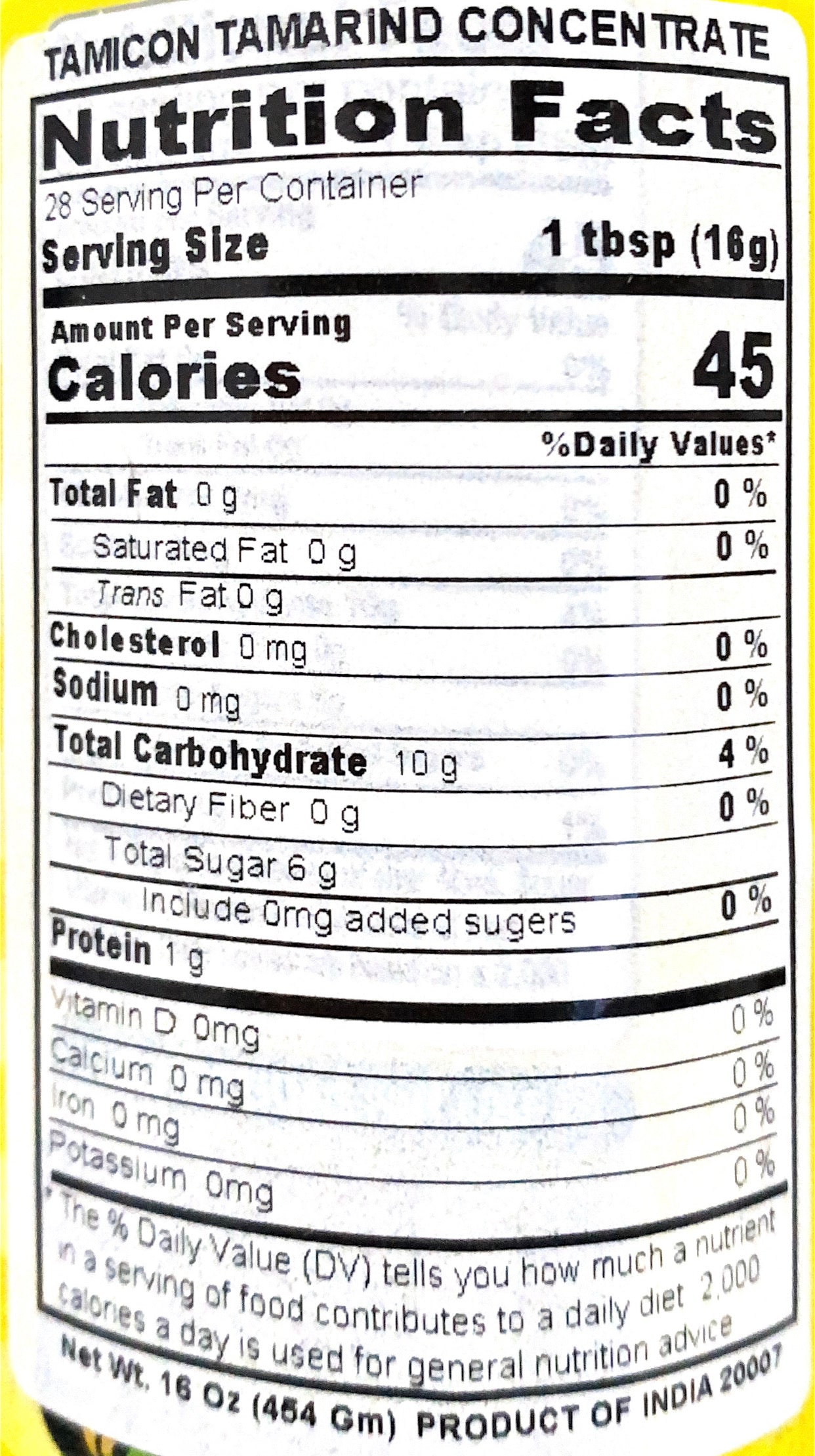 They are guaranteed and thoroughly inspected for excellence. Ingredients: TAMARIND (fruit) Directions for use One teaspoon for 6 persons for specific tastes of soups, stews, gravies, sambar and rasam etc, in any cold, warm or hot preparation. Nutrition Facts Service size 1 TBL Spoon (16g) Servings Per Container 13 (200g container) Amount Per Serving Energy 40kcal Total Fat 0g 0% Saturated Fat 0g 0% Trasted Fat 0g 0% Dietary Fiber 1g 6% Sugar (total reducing) 5g 31% Cholesterol 0g 0% Sodium 0.05g 0.30% Total Carbohydrate 9.45g 59% Protein 0.5g 3% Not a significant source of clear fiber, sugar, vitamin A, vitamin C, Calcium and Iron. Daily values are based on a 2,000 average cycle data.