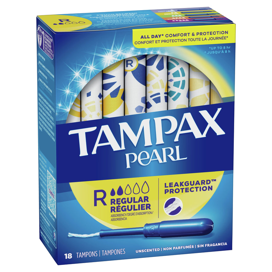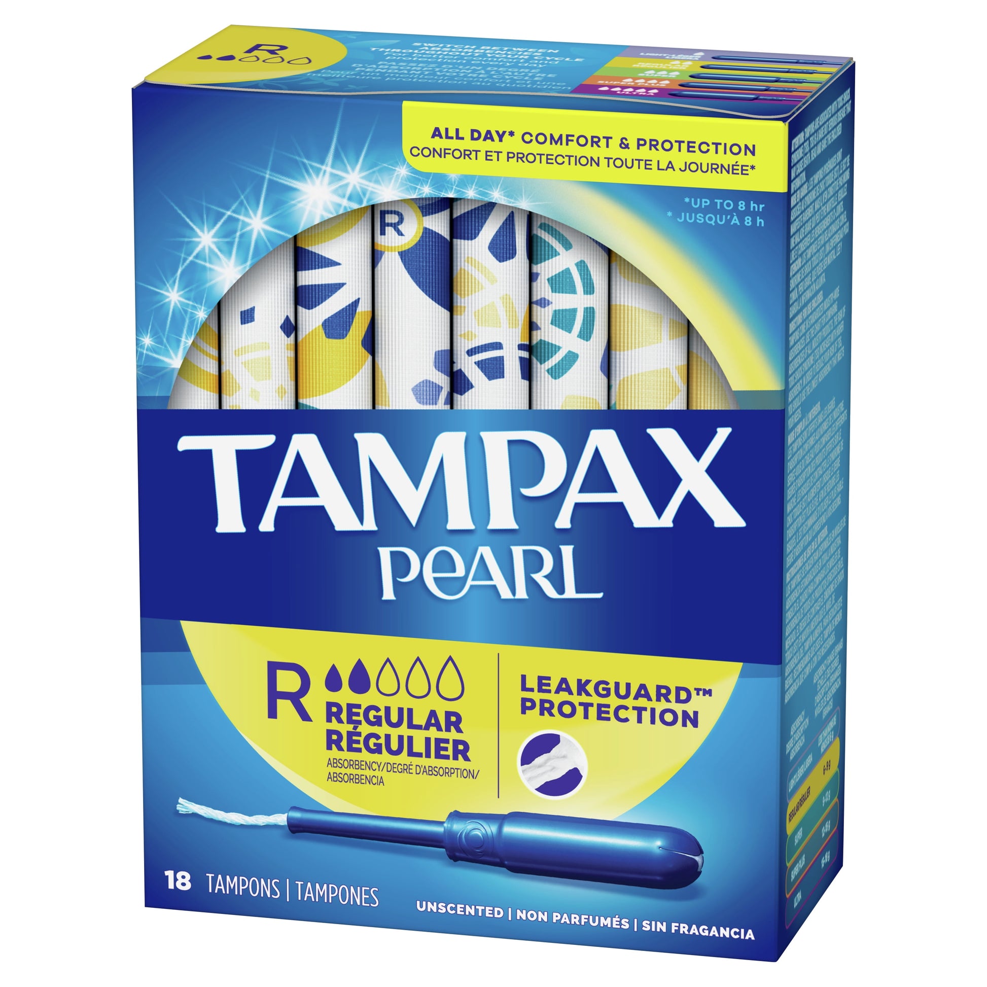 It's time to Tampax and live your life without limits. Get incredible all day comfort and protection for up to eight hours with Tampax Pearl tampons. Choose from five different absorbencies to match your changing flow. Got leaks? Go up an absorbency. Uncomfortable to remove? Go down an absorbency. Designed with a LeakGuard Braid to help stop leaks before they happen. Tampax Pearl Regular/Super/Super Plus Absorbency provides protection you can feel good about. Free of dyes, perfume, latex*, BPA, and elemental chlorine bleaching. Unscented, 18ct. Plus, inserting the tampon is made easy thanks to the applicator's Anti-Slip Grip, while Tampax FormFit protection lets it gently expand to your individual shape. How to insert a tampon: Slowly insert the tampon applicator from the tip, all the way to the grip. After you've pushed the plunger in all the way, pull the applicator out. How to remove a tampon: You'll use your thumb and finger to grip the string and pull it slowly out. Please do not flush your tampon. Properly dispose of your tampon in the trash. Ready to ditch the leaks? Get amazing protection with Tampax, the #1 U.S. Gynecologist recommended tampon brand**. Discover your perfect flow combo and get the protection you need.*natural rubber latex**based on 2022 survey
