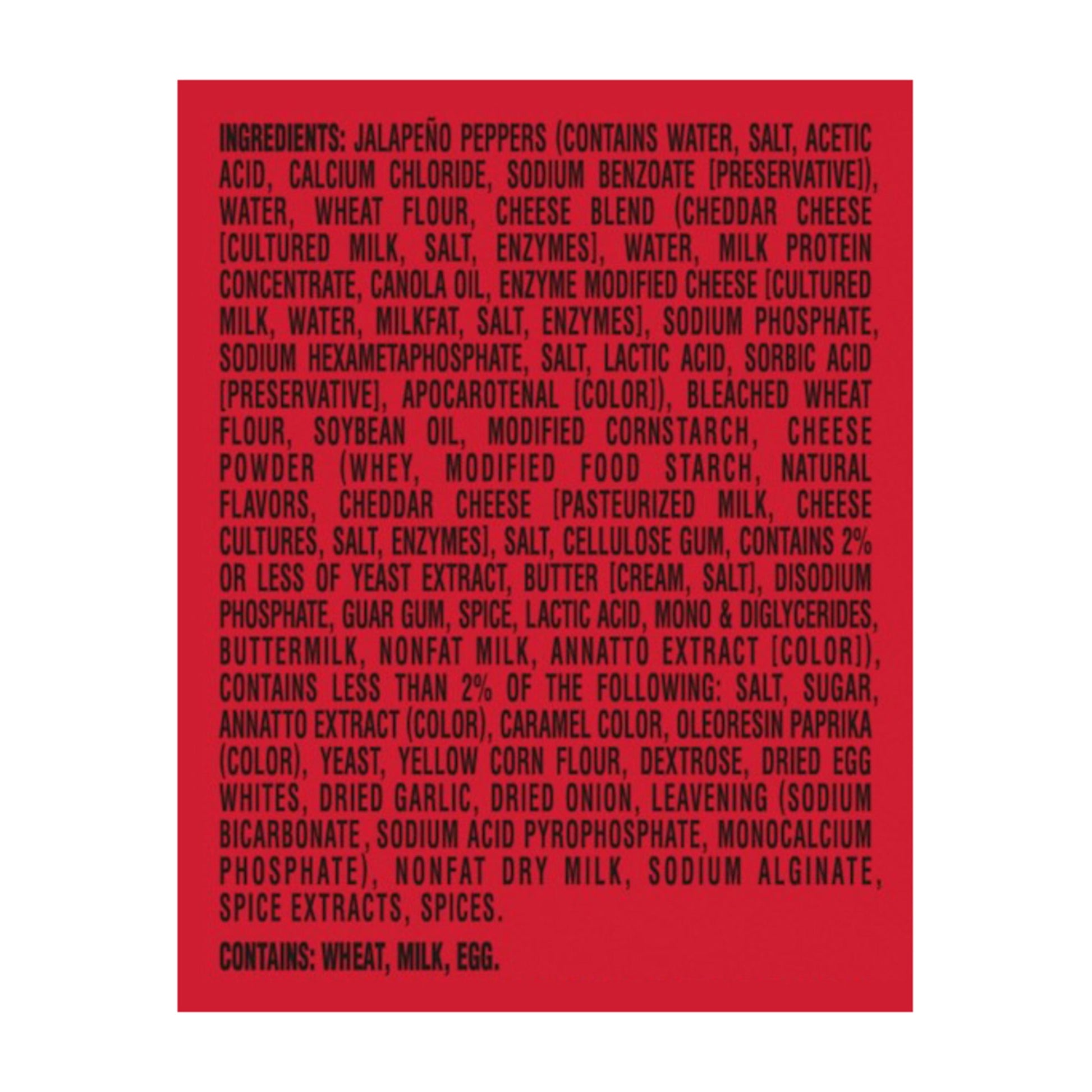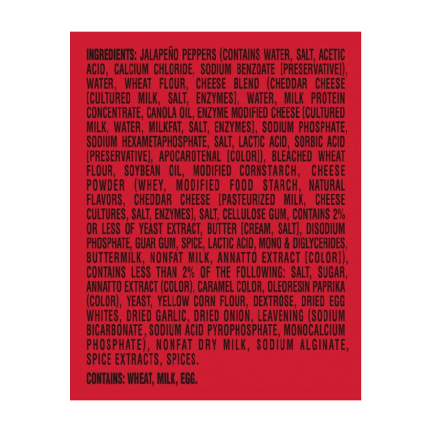 One 32 oz box of TGI Fridays Frozen Appetizers Cheddar Cheese Stuffed Jalapeno Poppers, containing about 12 servings