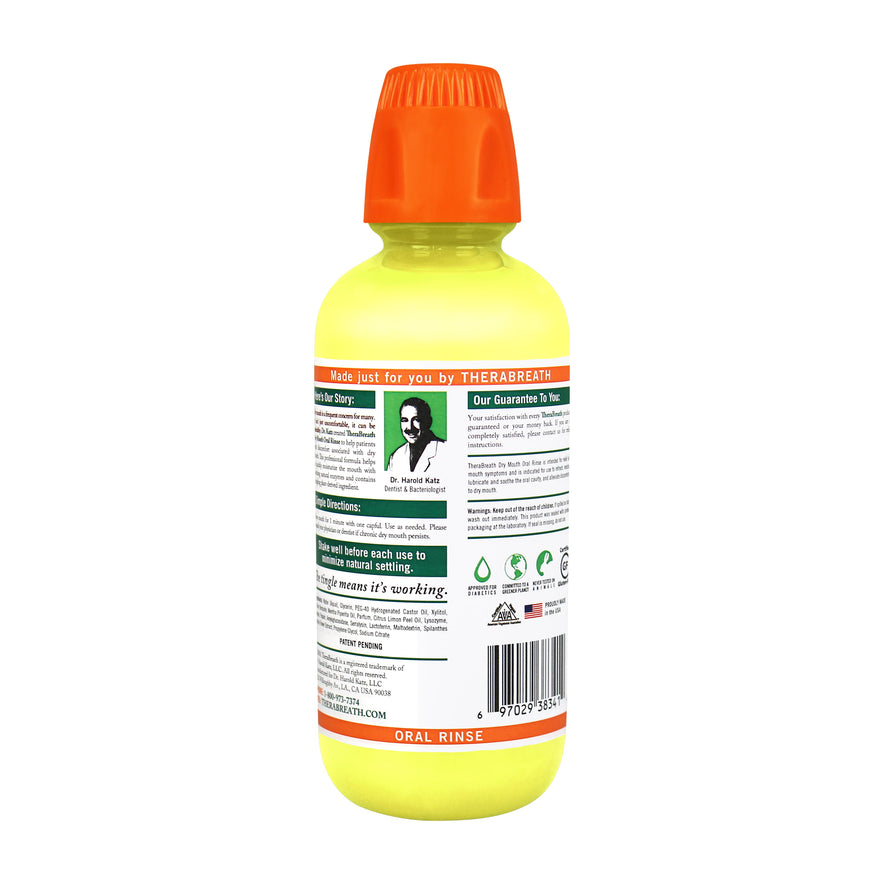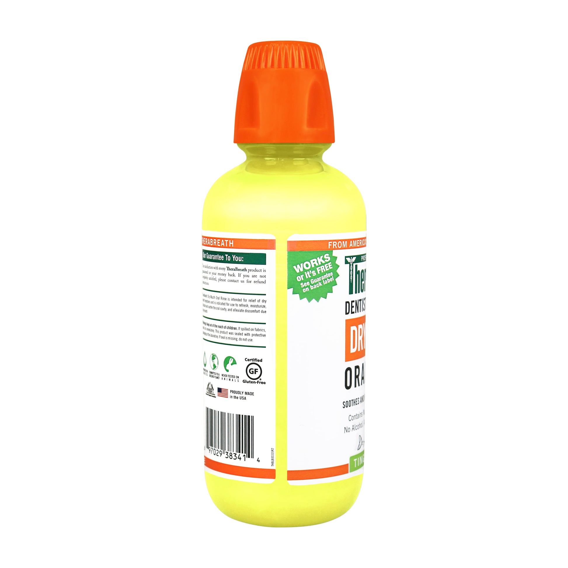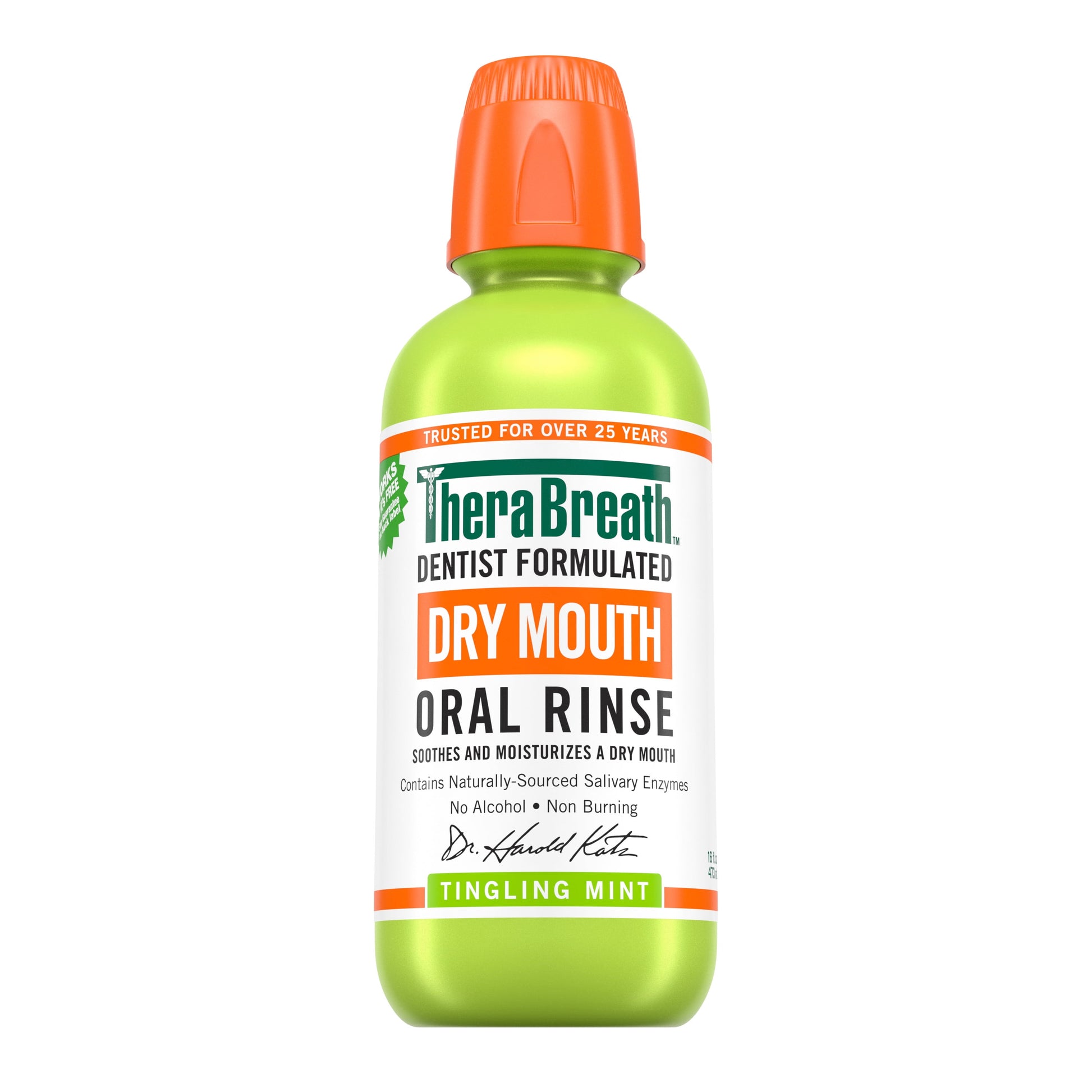 Dry mouth is more than an uncomfortable feeling. It can actually lead to an unhealthy mouth. Fortunately help is on the way! TheraBreath Dry Mouth Oral Rinse is formulated with naturally-sourced enzymes that help soothe and moisturize a dry mouth. These salivary enzymes and floral jambu extract combine to produce a tingling sensation that enhances oxygenating saliva. The alcohol-free formula doesn't burn or irritate, and the Tingling Mint flavor invigorates taste buds. We’re so confident in the effectiveness of TheraBreath Oral Rinses that we back them up with our 100% guarantee. If you're not satisfied, contact us within 30 days of purchase for a full refund. TheraBreath: It's a better mouthwash, satisfaction 100% guaranteed!