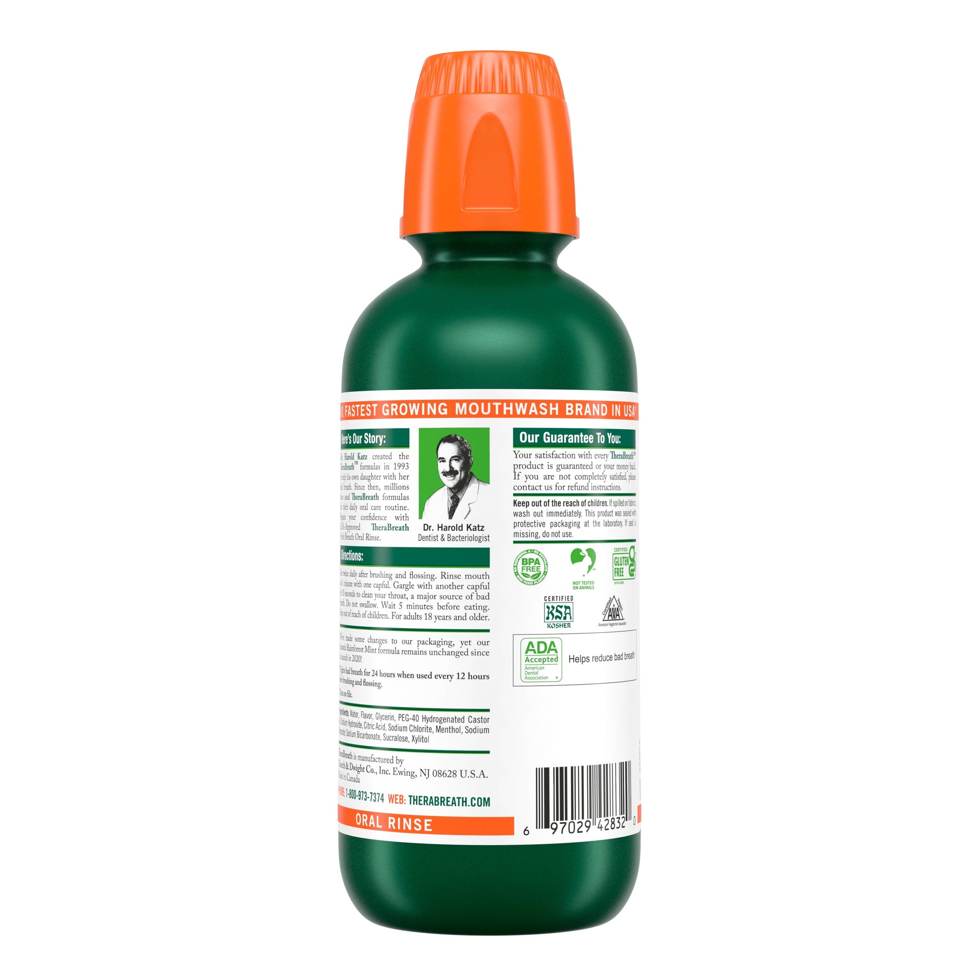 Bad breath is nothing to be ashamed of...everyone gets it! ADA accepted TheraBreath Fresh Breath Mouthwash has been fighting bad breath for over 25 years. When used as directed, it's clinically shown to fight bad breath for 24 hours when used every 12 hours after brushing and flossing. This alcohol-free mouthwash doesn't burn or irritate, and the oxygenating compound that fights bad breath starts working instantly. TheraBreath Fresh Breath Mouthwash has no artificial dyes and is certified kosher, vegan, and gluten-free. We’re so confident in the effectiveness of TheraBreath Oral Rinses that we back them up with our 100% guarantee. If you haven’t seen improvement in your breath, contact us within 30 days of purchase for a full refund. TheraBreath: It's a better mouthwash, satisfaction 100% guaranteed!