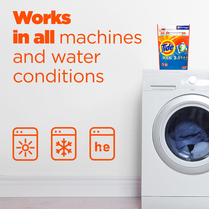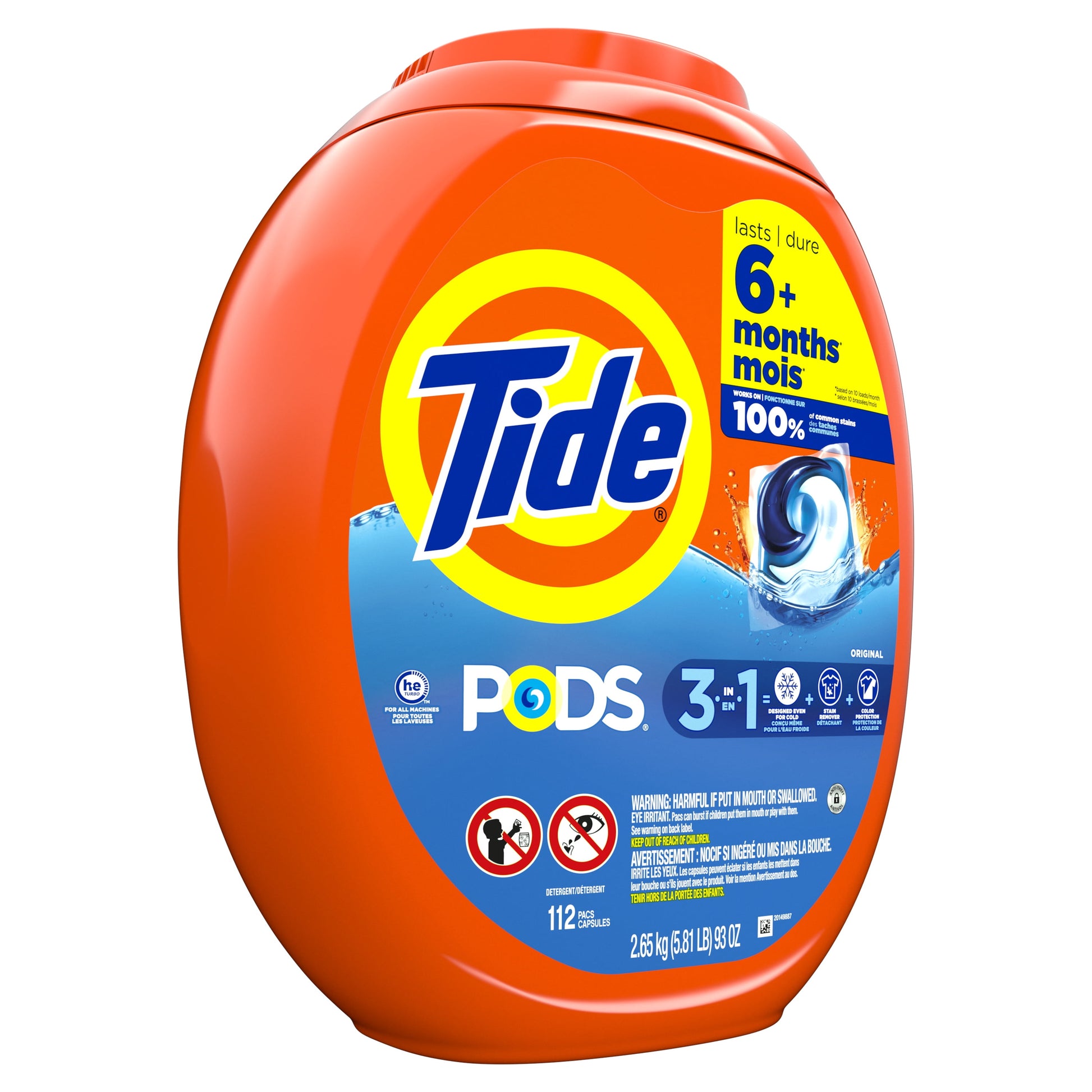 Face it, the world can be a really dirty place. In a world where common stains can be mere moments away, you need a clean that can stand up to 100% of them. You need Tide 3-in-1 PODS. By combining concentrated detergents, powerful stain removers and color protectors into one convenient laundry pac, Tide 3-in-1 PODS give you the Tide detergent clean you need with the ease of drop-in-and-done. But the news gets even better. Tide 3-in-1 PODS work in any machine, whether you normally use an HE detergent or not, and are designed to dissolve even in cold water. Just place a Tide PODS in the washing machine drum before adding clothing, and you're good to go. That's not only good for your sense of clean, its also good for your energy bill. Which means it's also good for the planet, and your wallet. Get the clean of Tide laundry detergent with the convenience and confidence of Tide laundry detergent PODS in every load, every time, for every family. 112 Count, Adult