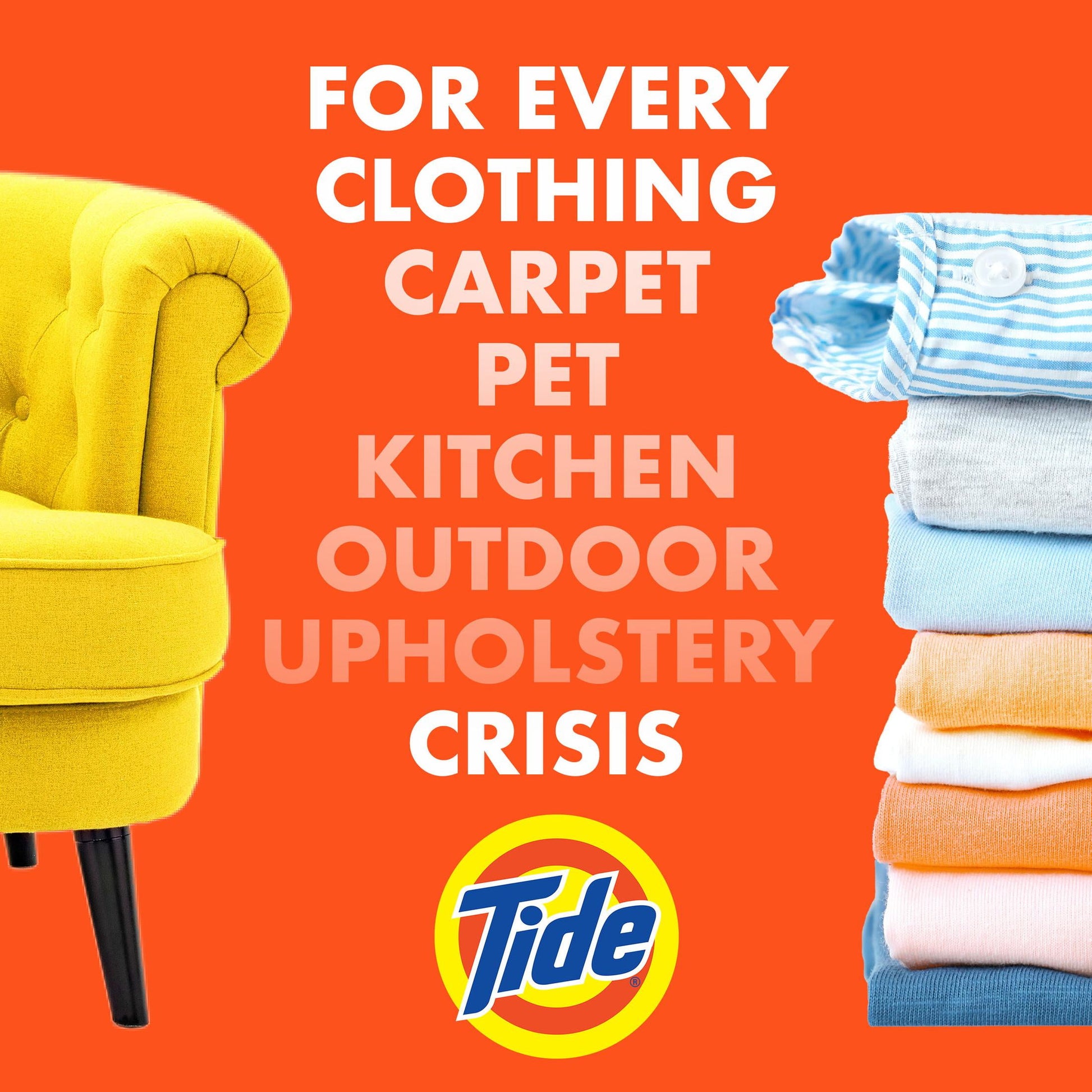 Remove tough stains from all kinds of fabrics with Tide Rescue Plus Oxi All-in-One Laundry Stain Remover Spray, 22 fl oz. Made for more than just laundry, this fabric stain remover also works on carpets, upholstery, car seats and pet bedding* with an advanced formula that eliminates wine, grass, blood, grease, dirt and more. For best results, spray Tide Stain Remover directly on the stain within 24-48 hours of its occurrence. Rub in, wait about 5 minutes, then wash the item with your normal laundry detergent at the warmest setting allowed per the fabric care instructions. For the toughest stains, let the treated item sit for as long as one week before washing. Keep one bottle in your laundry room as a grease stain remover for clothes and a second bottle under your kitchen sink as a carpet cleaner spray and pet stain remover. This unscented stain remover is specially formulated by Tide to work throughout your home.