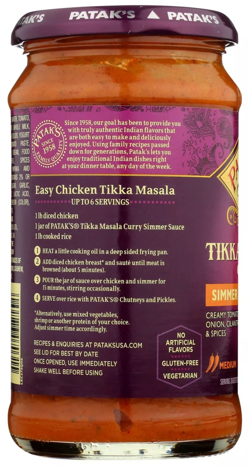 Patak's Tikka Masala Curry Simmer Sauce 15oz