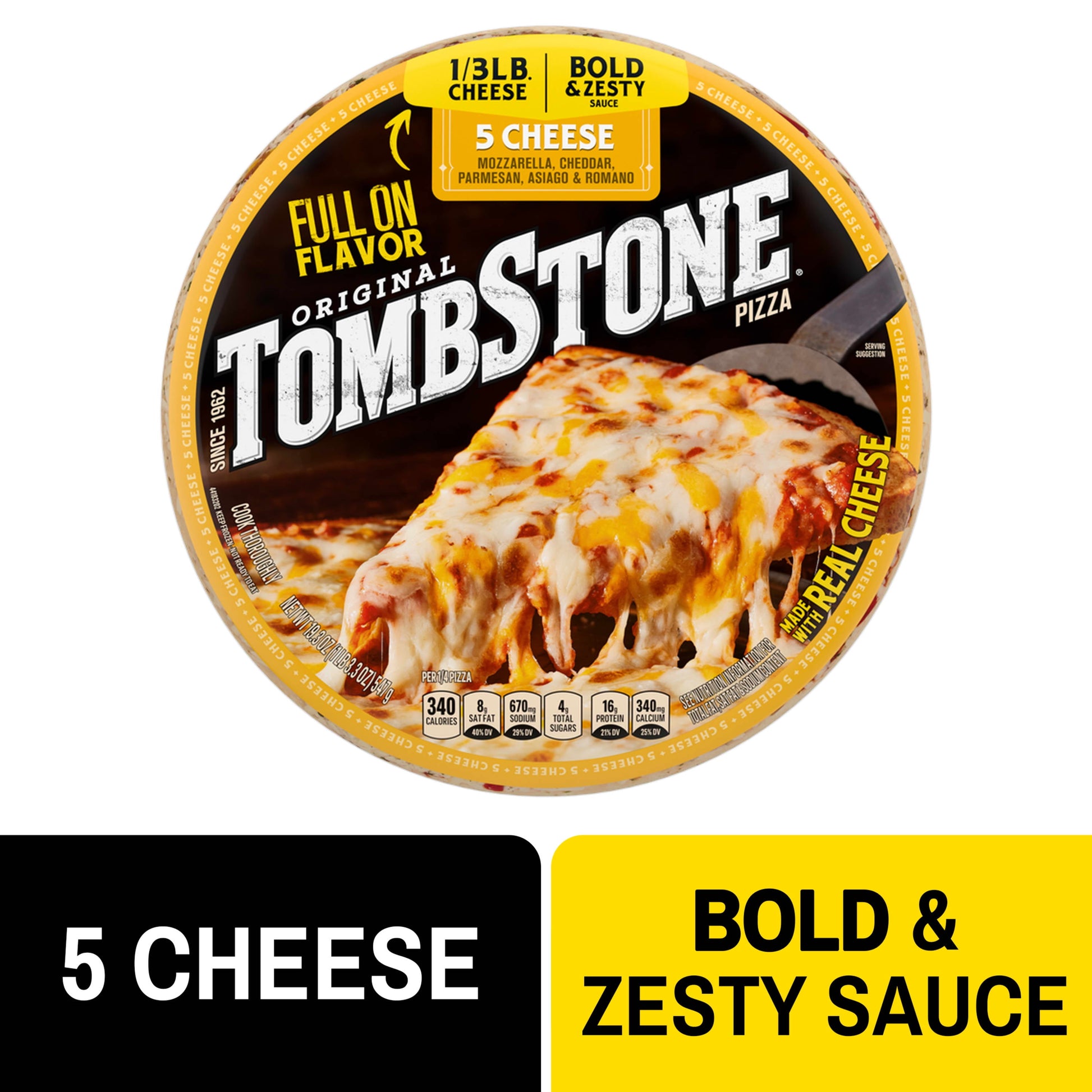 Tombstone five cheese pizza featuring bold and zesty pizza sauce that delivers full on flavor