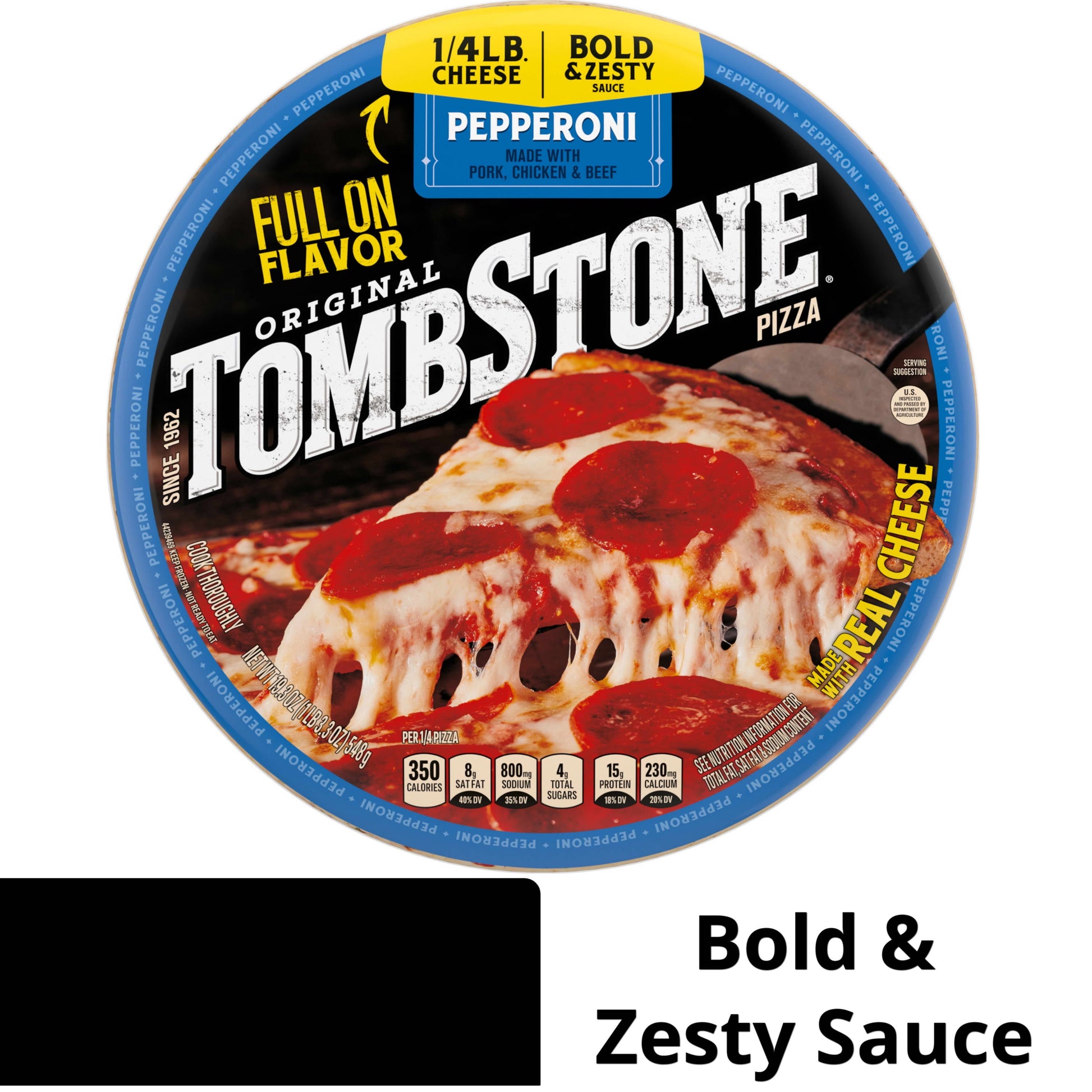 Tombstone pepperoni pizza featuring bold and zesty pizza sauce that delivers full on flavor
