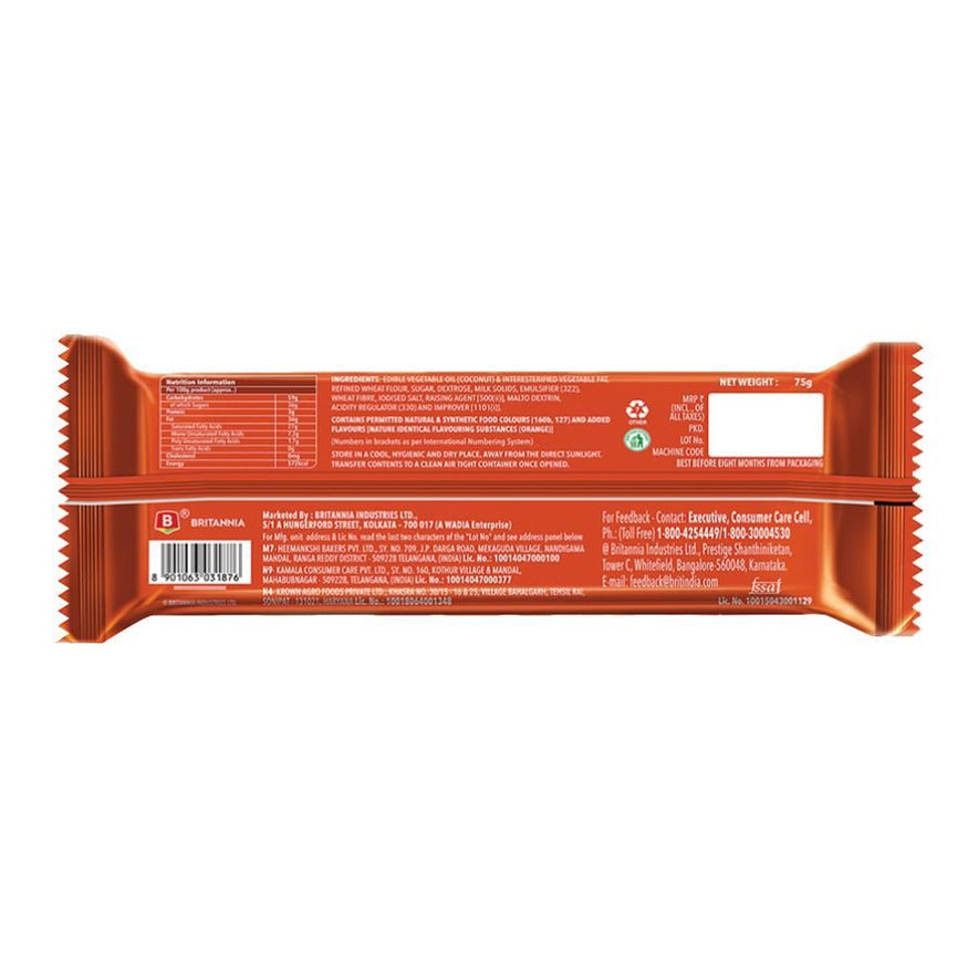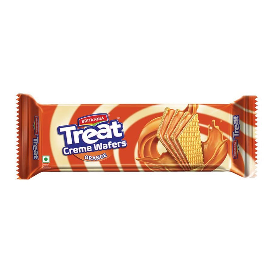 Britannia Treat Wafers Orange is a discovering journey of taste filled between the layers of crispy wafers. The orange flavour gives your taste buds a delectable taste while the crunchiness of wafers adds newness to it. Believing in delivering fresh and healthy products, Britannia India manufactures some of India's favourite brands like 50-50, Tiger, NutriChoice, Bourbon, Good Day, Milk Bikis and Little Hearts.