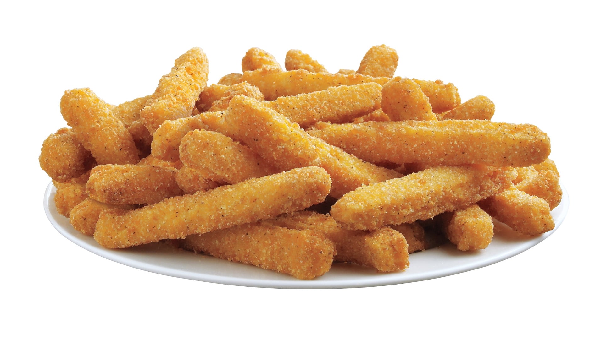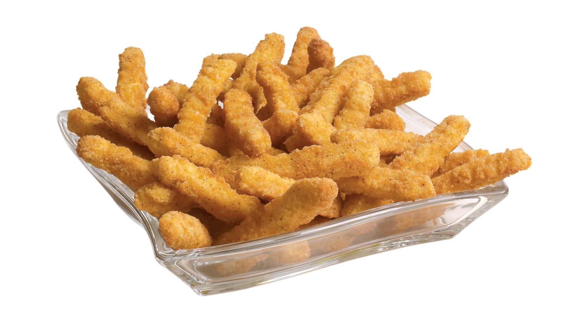 Ready to heat and eat, prepare frozen breaded chicken fries in an oven or microwave