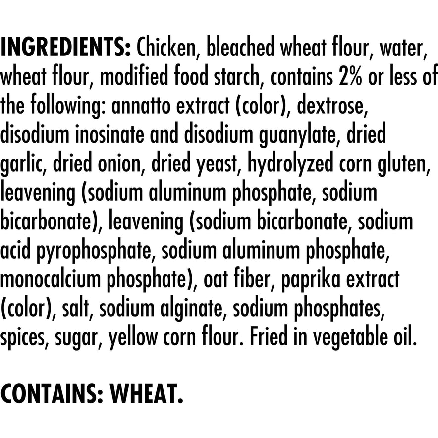 Fully cooked chicken is breaded and seasoned with a savory blend of spices