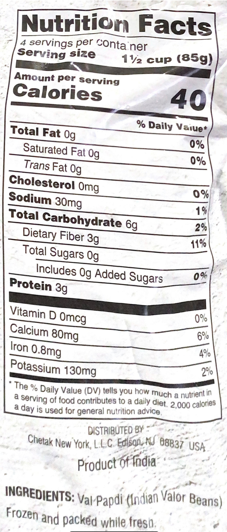 Val Papdi are a very good source of vitamin C, vitamin K, manganese, dietary fiber, folate and thiamin (vitamin B1). The Val Papdi are hand gathered at peak ripeness and flash frozen on harvest day to lock in all the nutrients and flavor.