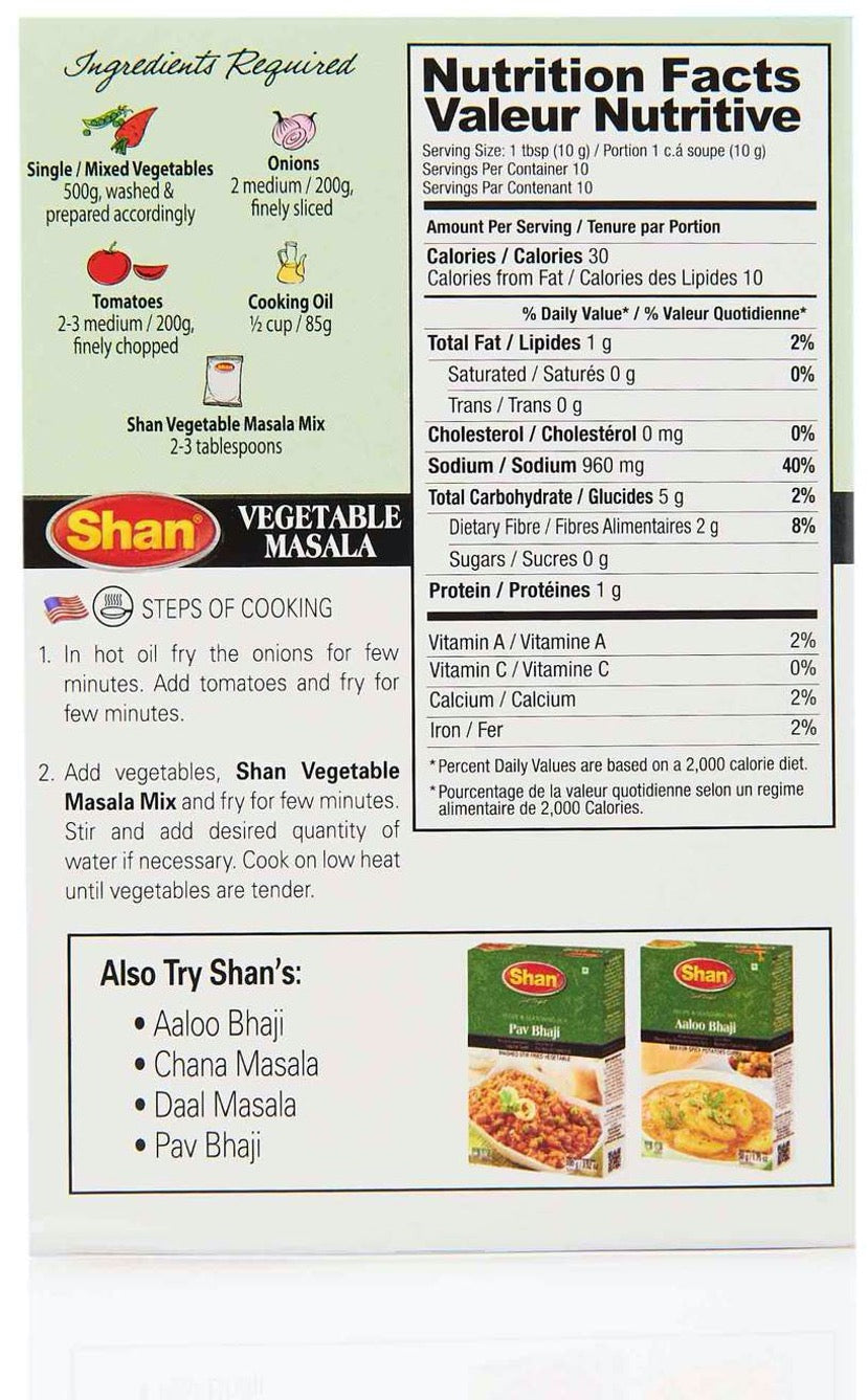 Shan Vegetable Masala Mix helps you prepare delicious vegetable curry for your everyday meal.