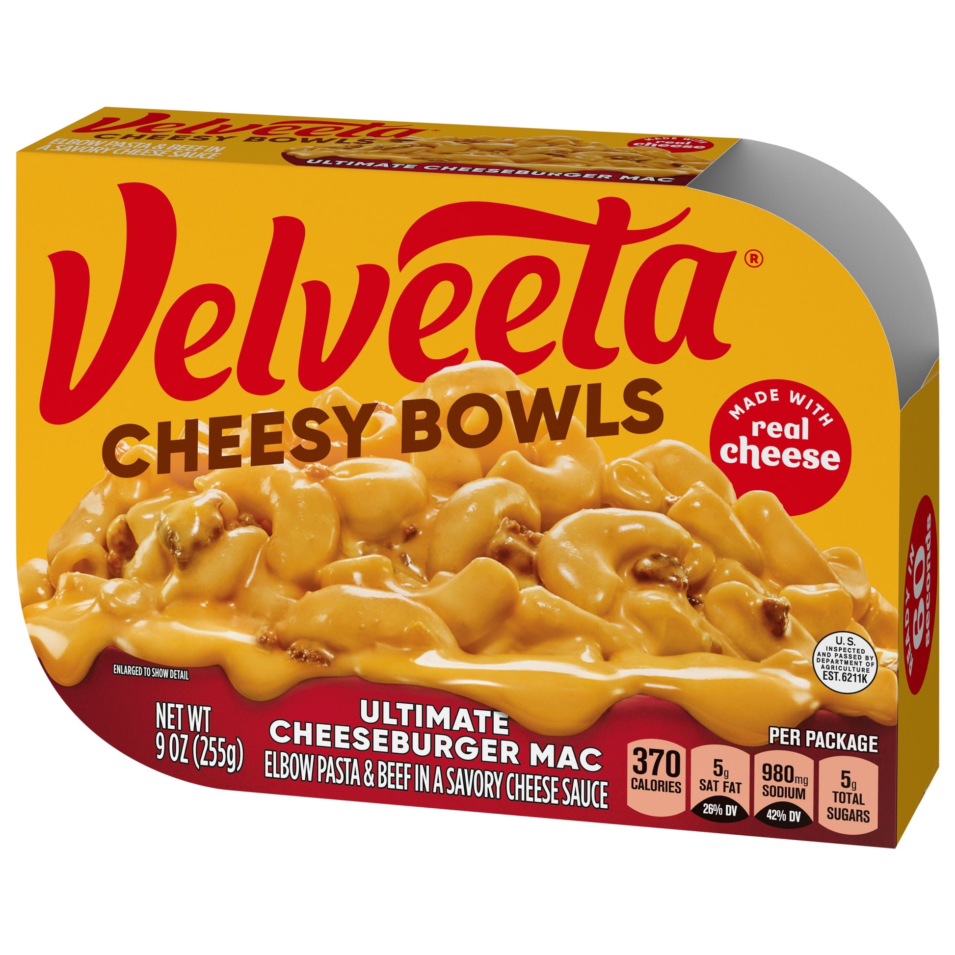 One 9 oz box of Velveeta Cheesy Bowls Ultimate Cheeseburger Mac Microwave Meal