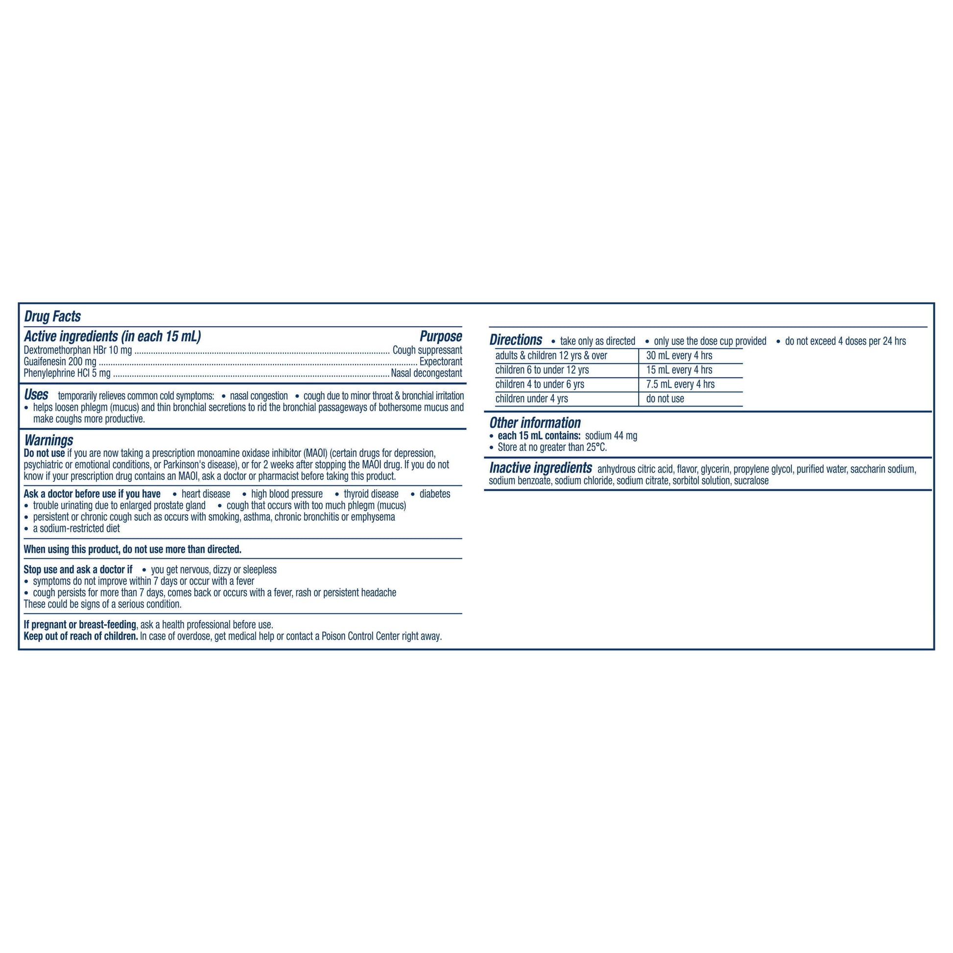 DECONGESTANT AND COUGH RELIEF. Contains: Phenylephrine HCI, Dextromethorphan HBr, and Guaifenesin to effectively tackle your child's cough and congestion symptoms