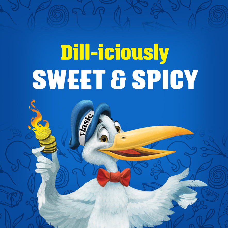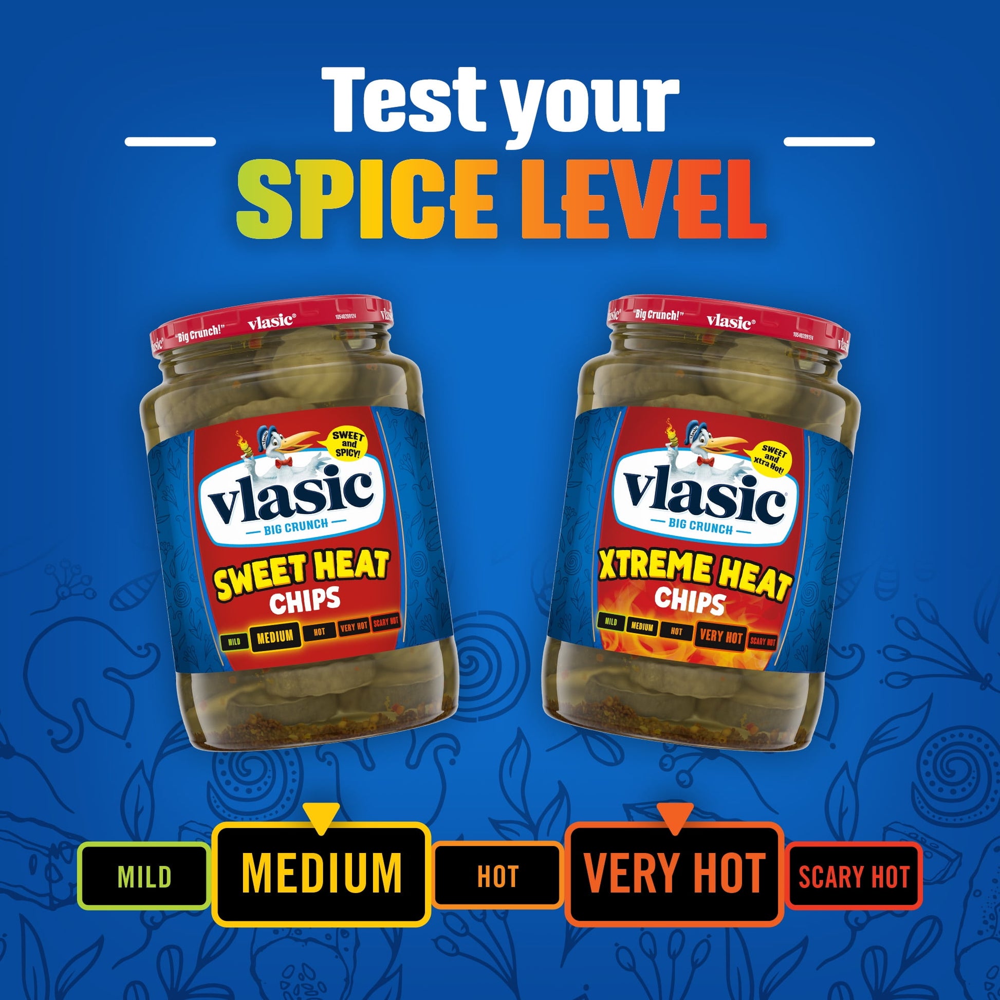 For a sweet and spicy spin on pickles, try Vlasic Sweet Heat Pickle Chips. Their medium spice level combines just the right amount of heat and sweet for a juicy, crunchy pickle everyone will love. They contain no artificial flavors and 20 calories per serving. From topping off a sandwich or burger, to a quick crunchy snack or midday craving buster, these spicy snacks are perfect every time. Stock your pantry with a tasty snack that always hits the spot. Vlasic: That's One Crunchy Pickle!