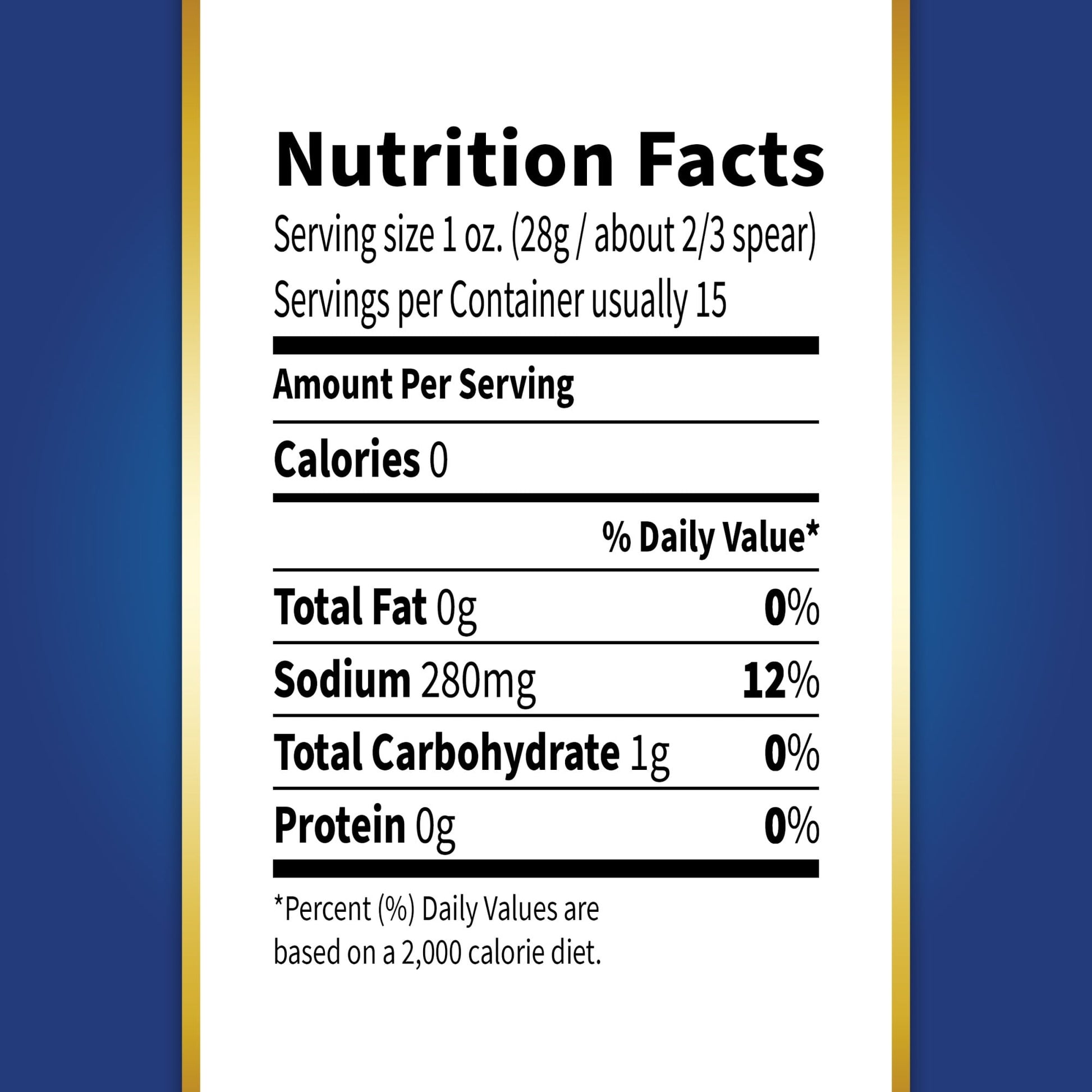Introduce a hint of zest into your snacks and meals with Vlasic Zesty Dill Pickle Spears. All included ingredients, along with the Vlasic secret pickling recipe, make these dill spears zesty and flavorful. These zesty dill pickles contain 0 calories while delivering on big flavor and crunch. The spear shape makes these zesty pickles perfect for snacking or to serve with sandwiches. They're fresh packed in a 24 fluid ounce resealable jar to keep them tasting great whenever you have a savory craving. Vlasic offers several flavors and sizes of pickles, peppers and relish. Keto friendly: 1g net carbs (1g total carbs minus 0g dietary fiber), and 0g added sugar per serving.