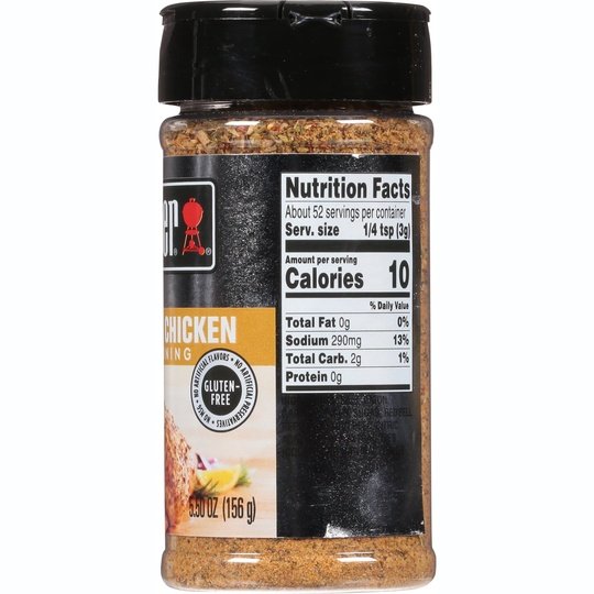 Weber Beer Can Chicken Seasoning helps you kick up the flavor of your favorite grilled meals. This Weber seasoning helps to enhance your favorite protein, such as chicken breasts, pork, or even fish. This Weber Beer Can Chicken Seasoning mix is kosher, gluten free, and contains no artificial flavors or preservatives. Premium spices blended together to create flavorful seasonings that enhance the taste of your grilled favorites. This product does not contain any of the nine major food allergens.