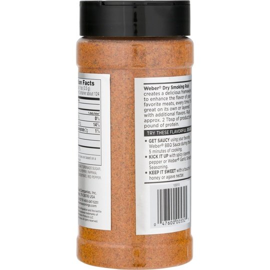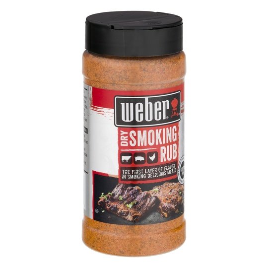 Weber Dry Smoking Rub helps you kick up the flavor of your favorite meals. This Weber seasoning creates a delicious framework to enhance your favorite recipes, every time. Itâs great on its own or layered with additional flavors. Weber Dry Smoking Rub will add mouthwatering flavor to your grilled steak, pork, or chicken favorites. Weber uses premium spices blended together to create a flavorful seasoning.