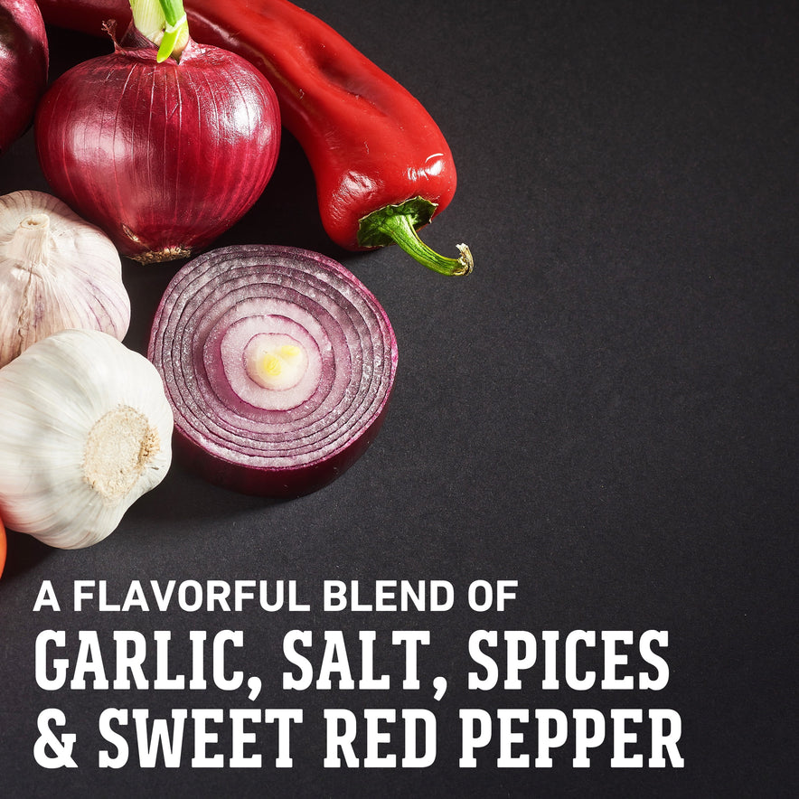 Weber grill seasoning features the perfect blend of sweet red peppers, garlic, onion, and spices