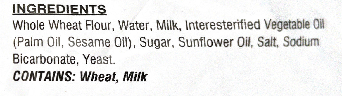 Ingredients: wheat flour, water, milk, sunflower oil, sugar, salt, dextrose, carrot fiber, baking soda, yeast.